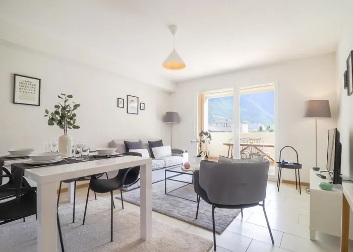 Das Modern Apartment Close To Martigny Train bietet einen Blick auf die Berge und liegt ungefähr 20 Gehminuten von der Burg La Bâtiaz entfernt